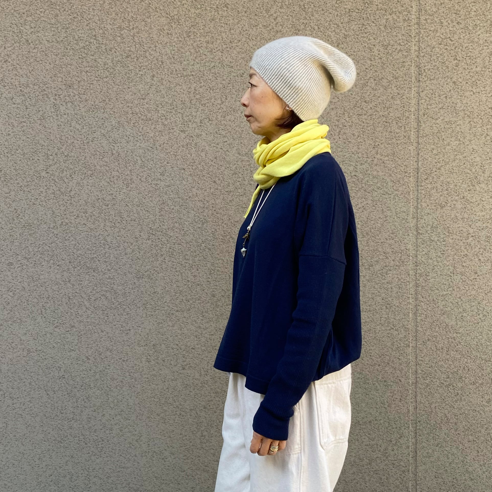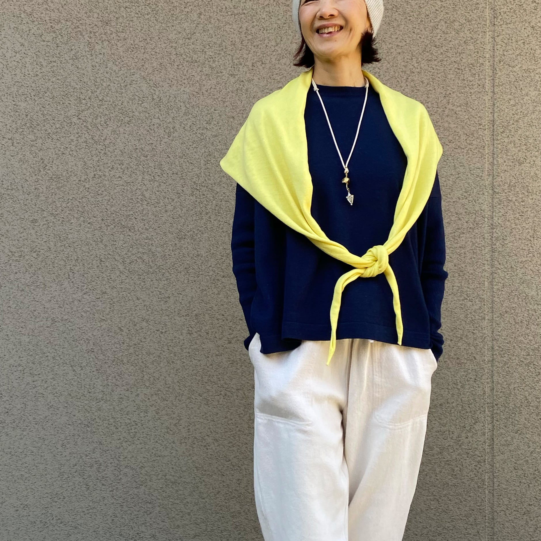 軽量でありながら、上質な温もりを感じられる一枚となっています。小さな三角形のデザインは軽く羽織ったり、しっかり首に巻いたり、使い勝手も抜群。