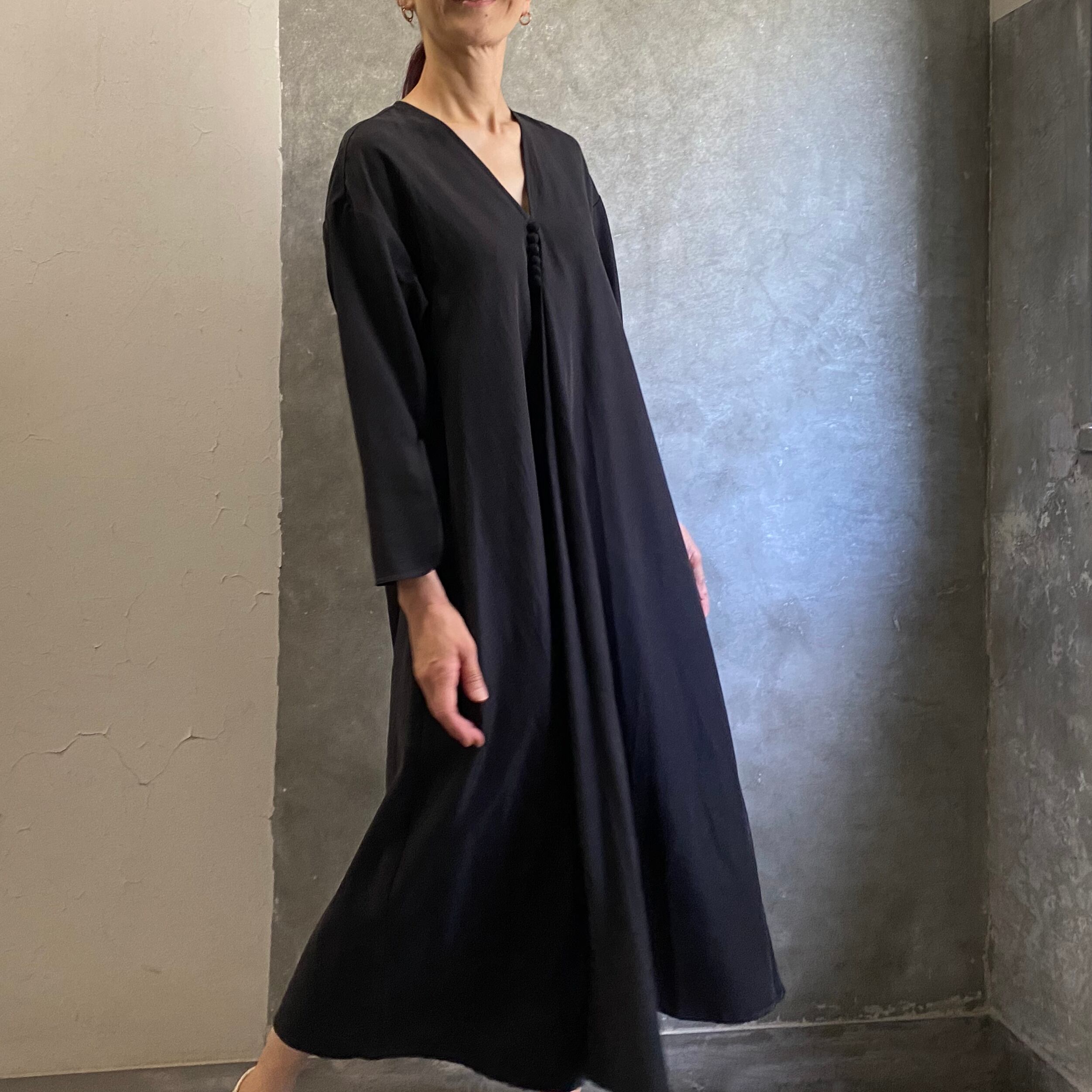 コットンシルクの豊かなドレープが美しい軽やかなワンピース。 素材:コットン70%シルク30% カラー:ベージュ/ネイビー/ブラック サイズ:フリー