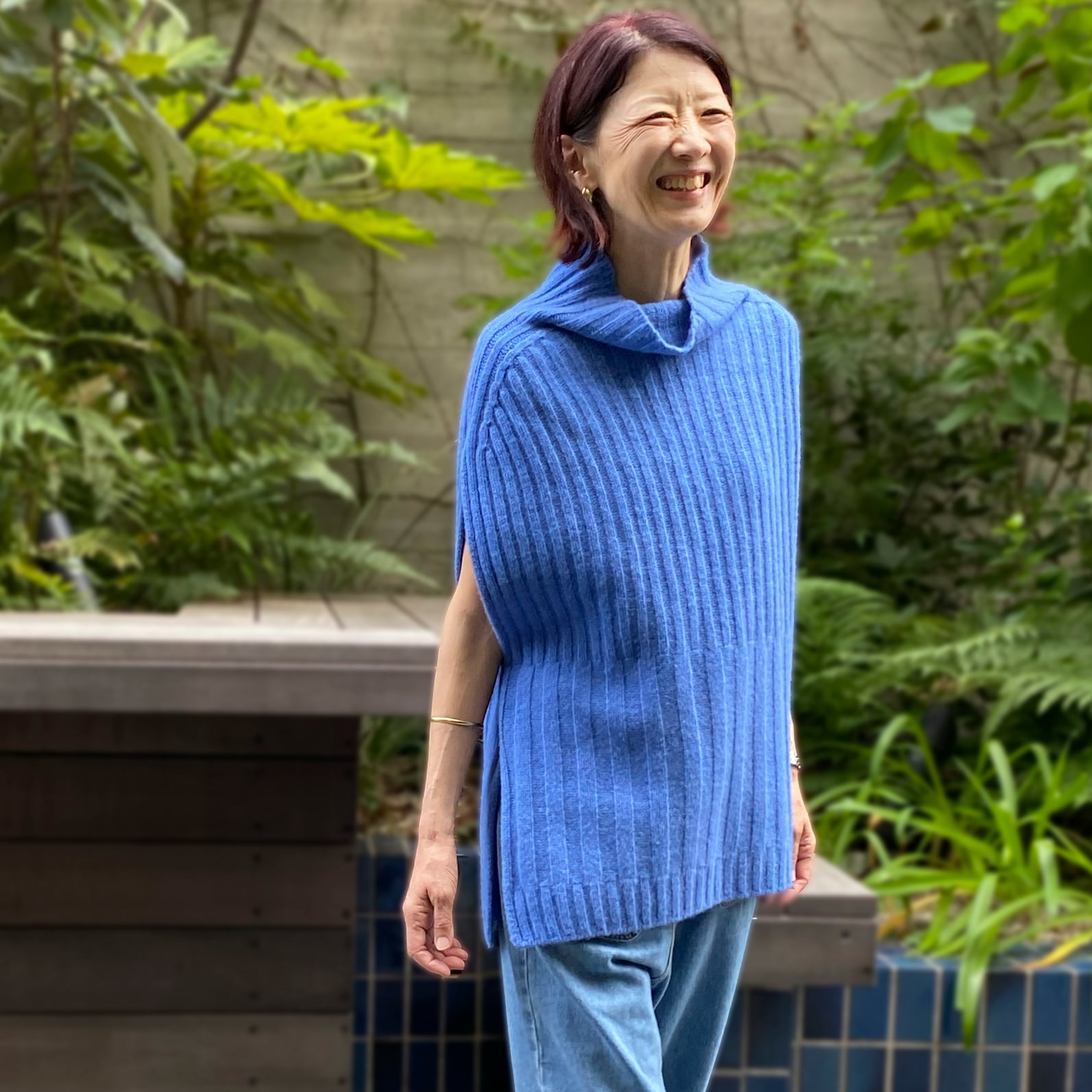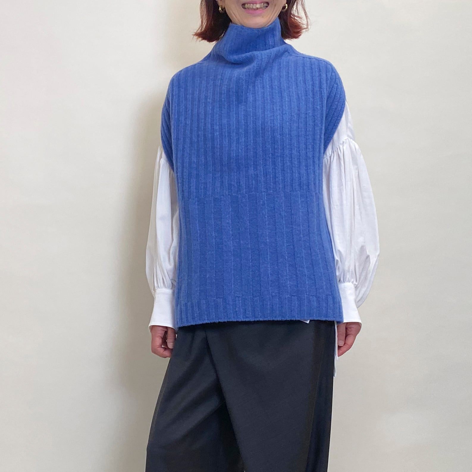 ハードに見えがちなリブ編みも、カシミヤ入りのソフトさで肌馴染みも良く、着心地抜群。